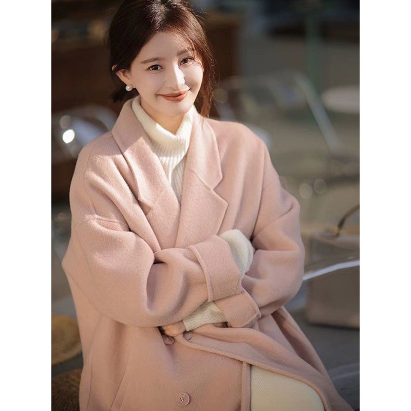 高级感双面羊绒纯羊毛大衣女2023秋冬新款韩版宽松中长款外套女装